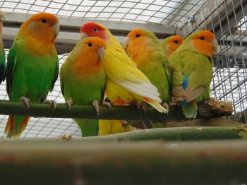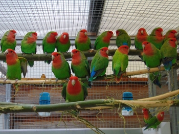 Roseicollis in Groen, Dgroen, Oranjemasker Cinnamon, oranjemasker groen, oranjemasker ino, *blauw*, cinnamon *blauw* en deze kleurslagen in opaline. |
